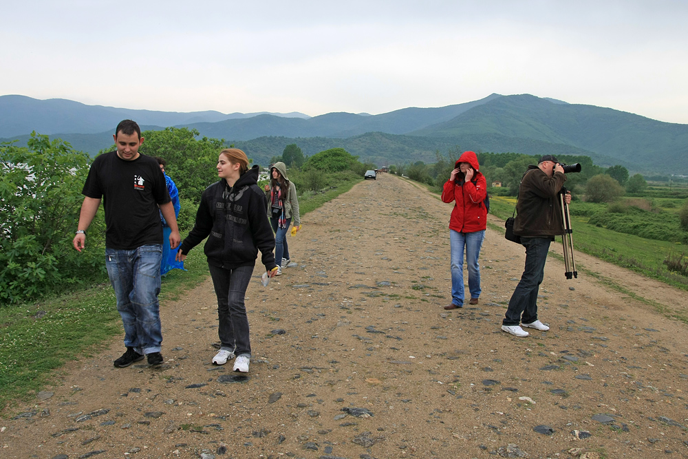 Събота, 23.04.2010 5:50 AM. Алармата се включва и след 10 минути сме на крака. Сандвичите са готови, а багажа – стегнат. Всичко е приготвено още от предишния ден и чакаме с нетърпение Артин и Ани да се обадят. 6:35 е, а телефонът още не е звъннал. Уговорката беше да тръгнем в 6:30 от Пазарджик. В 6:37 така очакваният звън достига до ушите ни. Тръгваме веднага за мястото на срещата и след 3 минути сме там но тях ги няма, чакат ни на предишния светофар. Кратък разговор по телефона коригира грешката и вече всички сме се натоварили в колата и пътуваме. Решаваме да минем през Дупница, въпреки че е по-далече. Пътят през Юндола и Белица е надупчен като краве сирене според описанието на нашите спътници. И този не беше много супер, но все пак е доста по-добър. Спираме само на бензиностанция преди Дупница, за да източим бойлерите и кафеджийте да се сдобият с така желаната кафява течност. Разговор по телефона с Галя ни дава сведение за местоположението на автобуса, който е тръгнал в 7:00 от София, и който трябва да срещнем по пътя, за да се видим с нашите приятели пътуващи в него. И така като по график пристигаме на Кулата и виждаме белият автобус. Естествено минаваме КПП-то преди него. На българска страна вече няма пункт, а са обединени двата в едно. Показваме личните карти и като в белите страни минаваме за около 1 минута. На гръцка страна спираме, за да изчакаме автобуса.