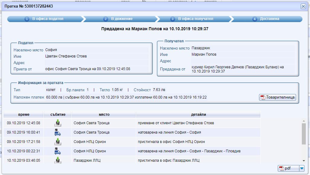 Явно КОЛЕЖКАТА която е пуснала пратката се казва